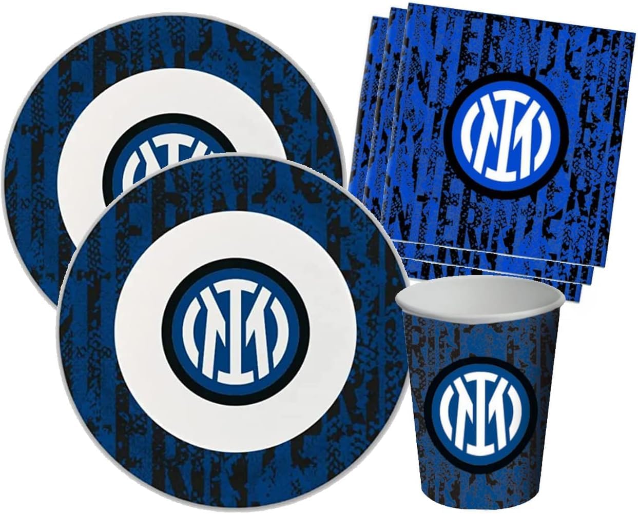 Kit Festa 8 Persone Set Tavola Addobbi Party Compleanno con 8 Piatti, 8 Bicchieri e 20 tovaglioli - INTER