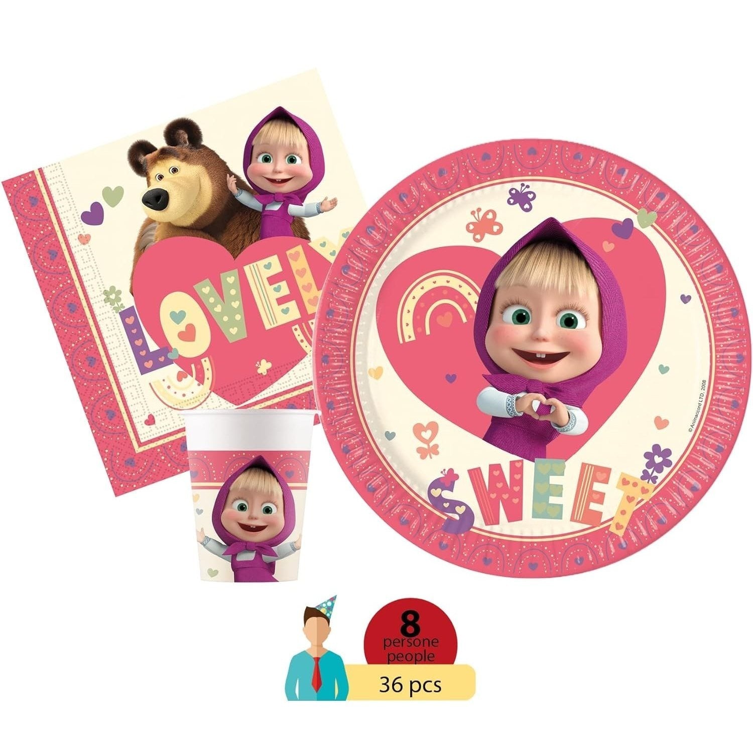 Kit Festa 8 Persone Set Tavola Addobbi Party Compleanno con 8 Piatti, 8 Bicchieri e 20 tovaglioli Orso