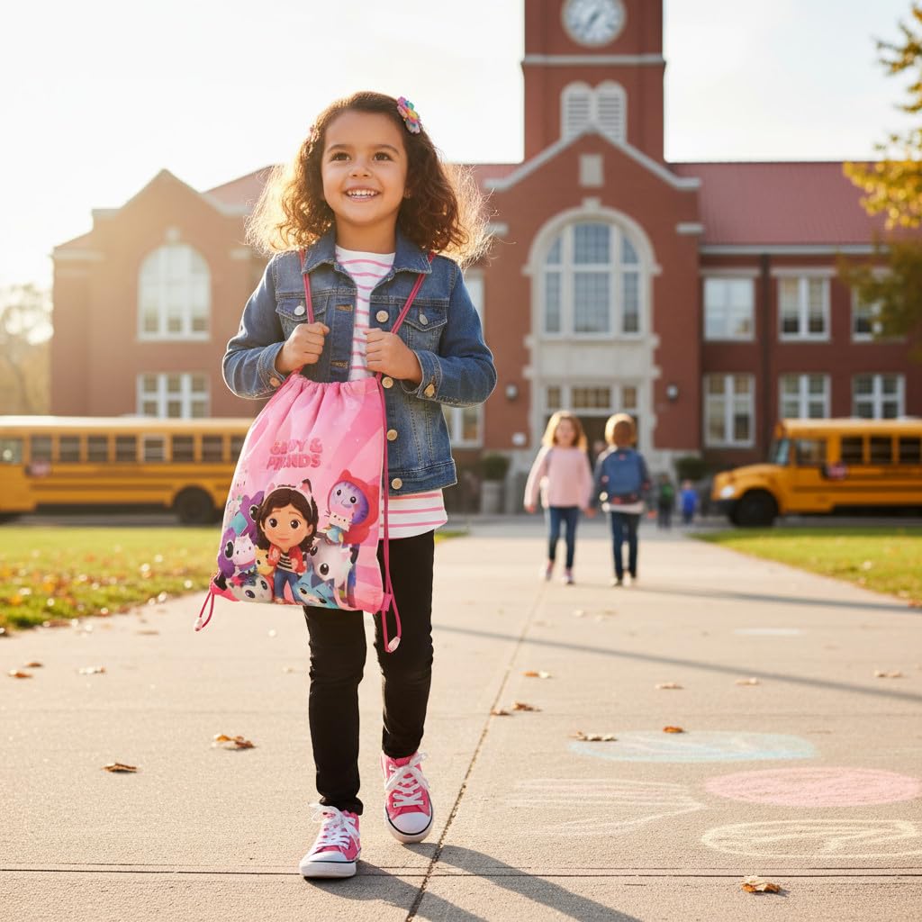 Sacca Sportiva con manici e tasca per Bambino, Borsa Coulisse Zaino per Asilo, Palestra, Piscina, Viaggio, Portascarpe GABBY