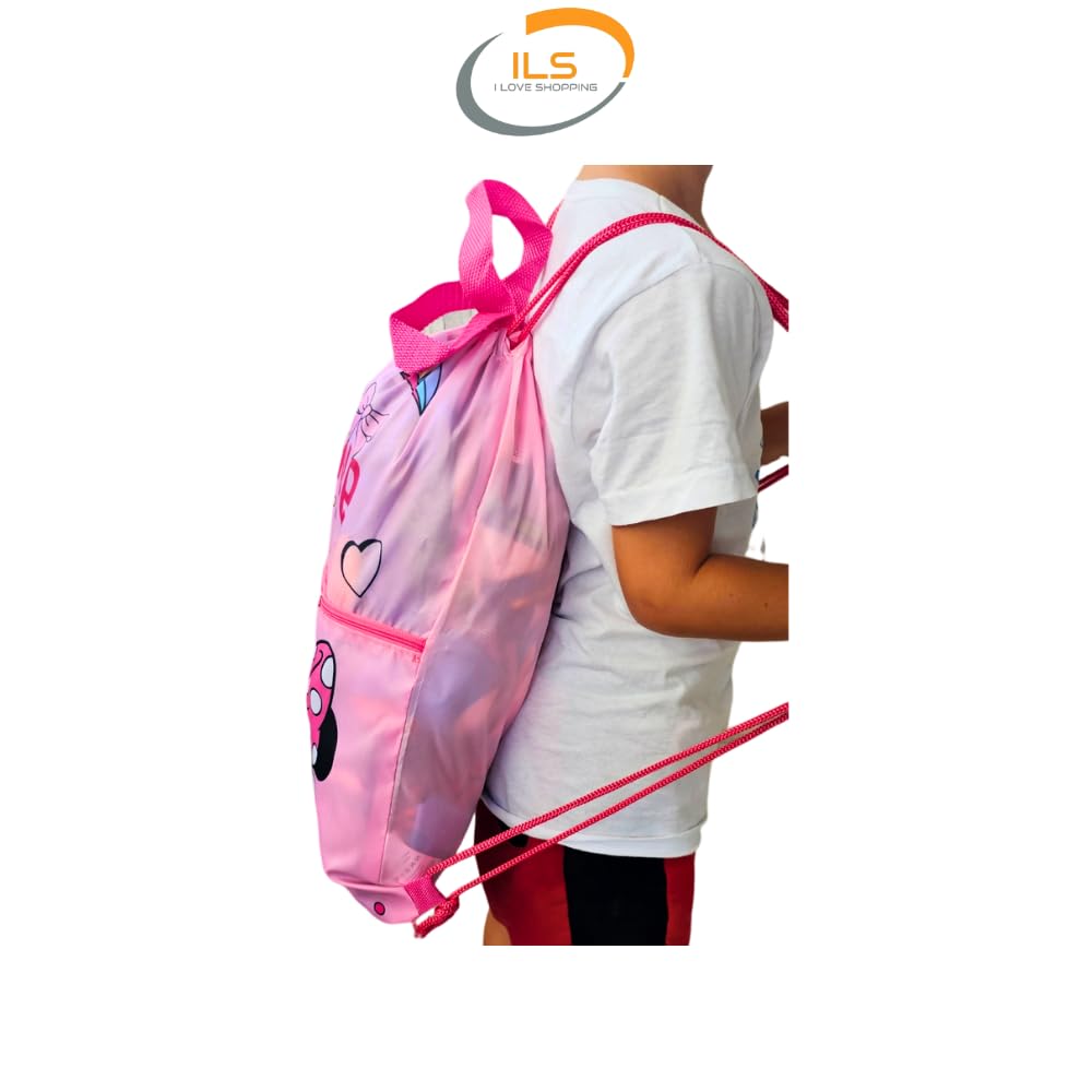 Sacca Sportiva con manici e tasca per Bambino, Borsa Coulisse Zaino per Asilo, Palestra, Piscina, Viaggio, Portascarpe ( MINNIE MOUSE)