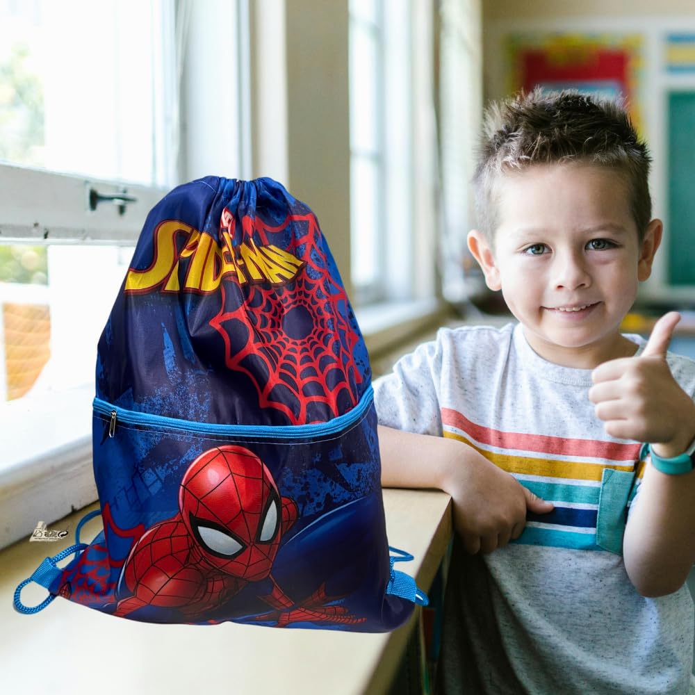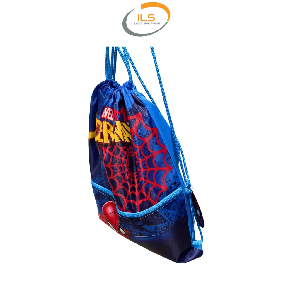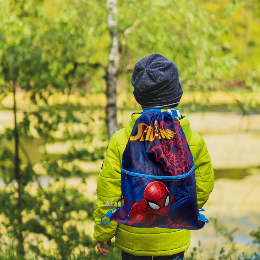 SPIDERMAN - Sacca Sportiva con manici e tasca per Bambino, Borsa Coulisse Zaino per Asilo, Palestra, Piscina, Viaggio, Portascarpe | per SPIDERMAN